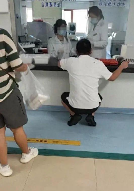 8月24日,有网友反映山东威海妇幼保健院检验科存在“丁义珍式”窗口。视频显示,一名男子蹲在地上,趴在窗口与戴口罩的医护人员沟通。这一情景让不少网友联想到电视剧《人民的名义》中的情节,并建议医院提供椅子或马扎。