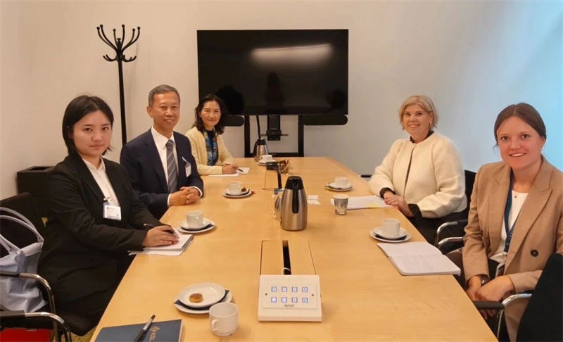 中国驻瑞典大使崔爱民会见瑞典财政部国务秘书莉娅。中国驻瑞典大使馆供图