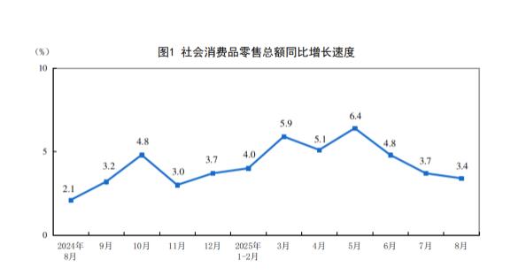按经营单位所在地分,8月份,城镇消费品零售额34387亿元,同比增长3.2%;乡村消费品零售额5281亿元,增长4.6%。1—8月份,城镇消费品零售额281056亿元,增长4.6%;乡村消费品零售额42850亿元,增长4.7%。