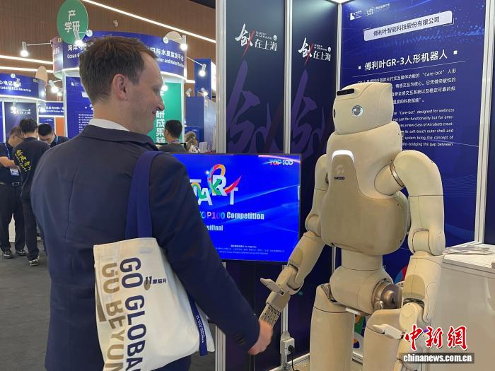 上海傅利叶智能科技股份有限公司在现场展示了一款主打陪伴功能的人形机器人。工作人员周韵洋告知,该企业成立之初就在做康复机器人,在这一领域积累了大量数据。相关数据被“投喂”给陪伴机器人,增强其与人类交互的能力。