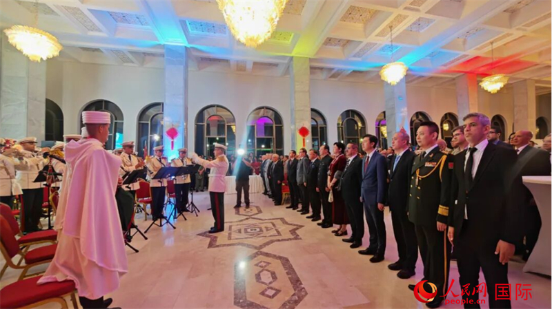 人民网阿尔及尔9月24日电 (记者郝瑞敏)当地时间9月23日晚,中国驻阿尔及利亚大使馆在阿文化宫举办招待会,隆重庆祝中华人民共和国成立76周年。阿尔及利亚总统特本赠送花篮,人民军参谋长谢赫里亚致贺。阿政府代表、高教和科研部长,民族院、国民议会多名副议长、专门委员会主席,海关总局局长,军方代表、国防部采购局副局长,外交、海外侨民和非洲事务部亚大总司长,以及政府、议会、政党、军队、媒体、智库、学者、退役军人等各界友好人士,各国驻阿使节和国际组织代表,在阿中资机构、华侨华人、留学生等700余人出席。