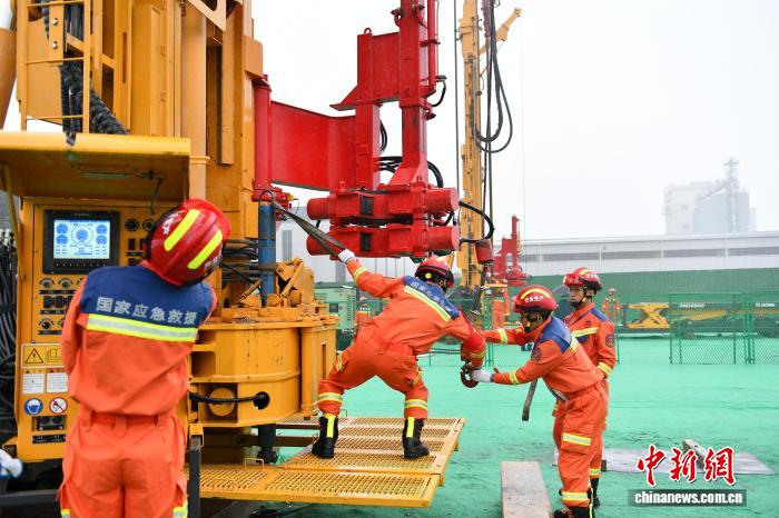 中新网济宁10月15日电(沙见龙 罗庆银)15日,在位于山东济宁的国家矿山应急救援山东特勘队比赛现场,钻探组的比拼正酣。