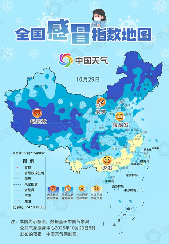 时值霜降时节,正是秋冬季温差最大的时期。加上近期冷空气活动频繁,气温起伏明显,流感病毒传播趋于活跃,感冒风险显著上升。如何科学预防感冒?中国天气网总结了“三勤三避一加强”防御口诀,帮你筑牢健康防线。