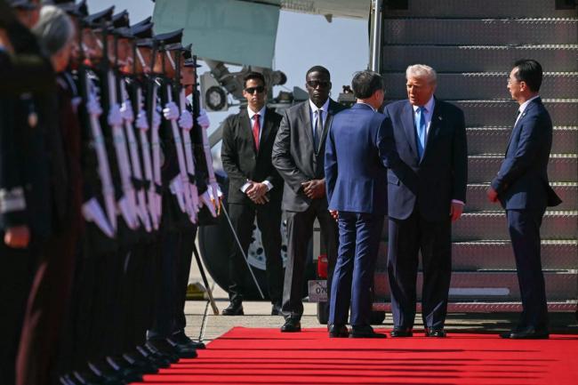 美国总统特朗普于10月29日上午乘专机抵达韩国釜山金海国际机场,正式开始为期两天的访韩行程。韩国方面在停机坪上铺设红地毯迎接,并鸣放21响礼炮表示欢迎。刚下飞机的特朗普显得有些疲惫,与他前几日抵达马来西亚时的兴高采烈形成鲜明对比。