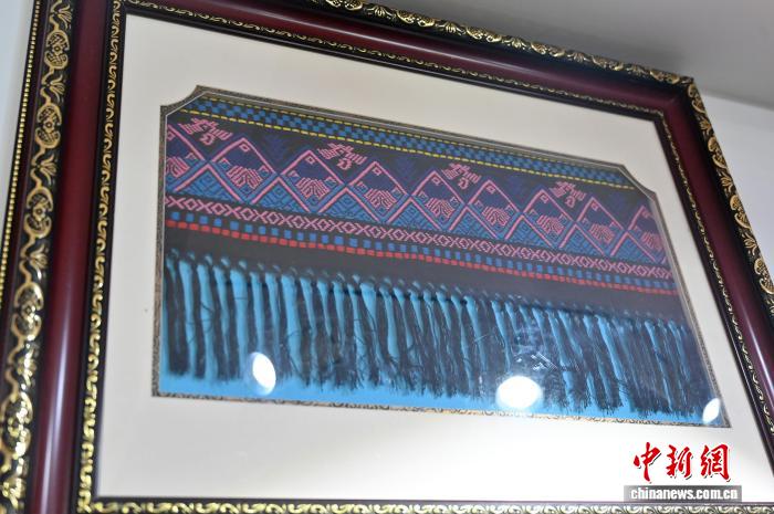 图为李素英创作含有壮、瑶、苗民族元素的织锦作品。俞靖 摄