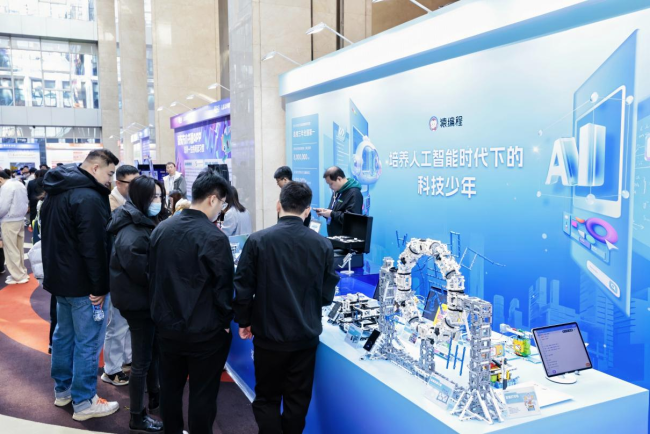 本次展会,猿编程展出了多个星瀚搭建的互动项目。“自动停车”项目通过语音交互与机械控制结合,锻炼指令转化与空间规划能力;“会学习的机械臂”则让学生在动手实操与机器自动运行的过程中理解动作序列与记忆逻辑。这些案例让青少年在趣味实践中深化对AI技术的理解,在跨学科应用中提升复合思维与问题解决能力。