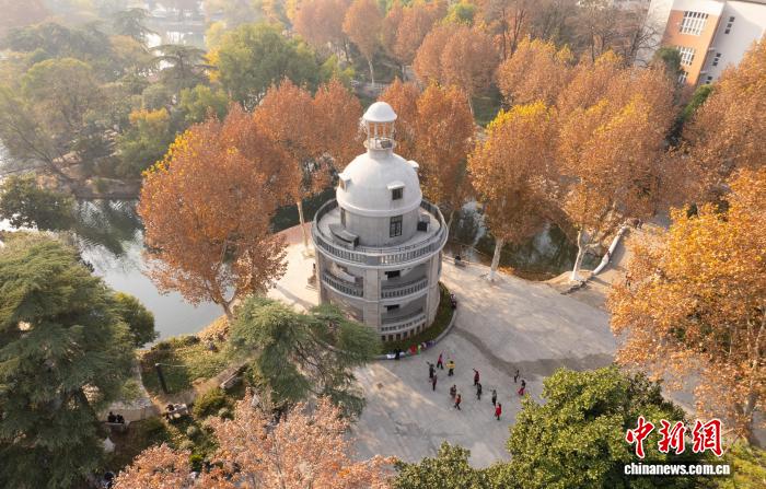 图为航拍修缮一新的张公亭。(无人机图片)中新社记者 张畅 摄