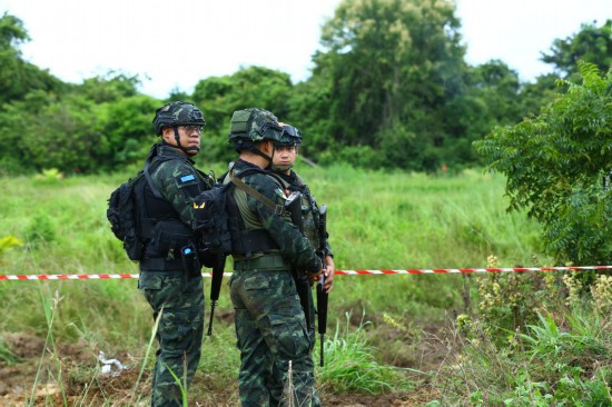 10月10日,在泰国沙缴府,泰军士兵在泰柬边境警戒。新华社记者孙玮彤摄