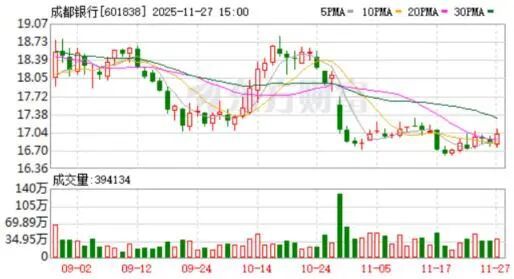成都银行成立于1996年12月,2018年1月31日在上交所主板上市,成为四川省首家上市银行、国内第8家A股上市城商行。截至2025年11月27日收盘,该行总市值721亿元,在A股42家上市银行中排名第24,但在17家城商行中排名相对靠前。