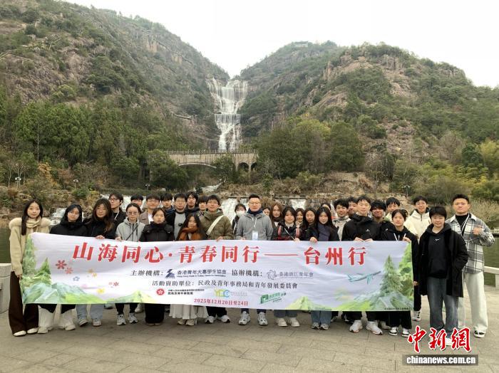 12月20日至12月24日,来自香港多所院校的中学生及大学生参与“山海同心·青春同行——台州行”交流团。图为交流团在天台山大瀑布景区合影。(主办方供图)