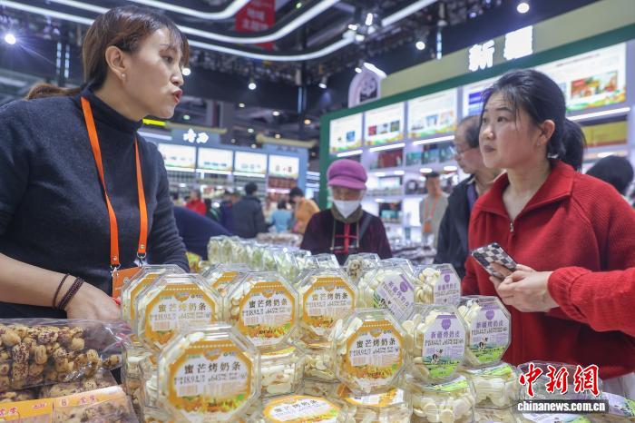 图为第七届江西农博会现场,春节临近,民众在采购各类年货农产品。中新社记者 刘力鑫 摄