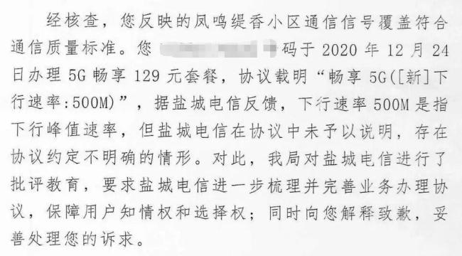 江苏盐城的陈先生因家中5G网速慢而感到困扰。经过检测,他所在楼层的5G网速为35Mbps,楼下则为57.6Mbps,而他购买的每月129元的5G套餐曾标注下行速率可达500M。陈先生多次向盐城电信投诉,并向江苏省通信管理局反映问题