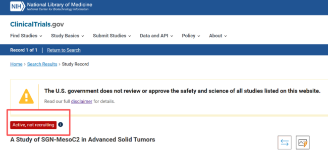 近日,动脉网查询ClinicalTrials官网信息发现,辉瑞一款名为PF-08052666/SGN-MesoC2的MLSN ADC药物临床试验状态变更为“主动,非招募”,计划招募人数从预计的365例骤然缩减至实际的19例。