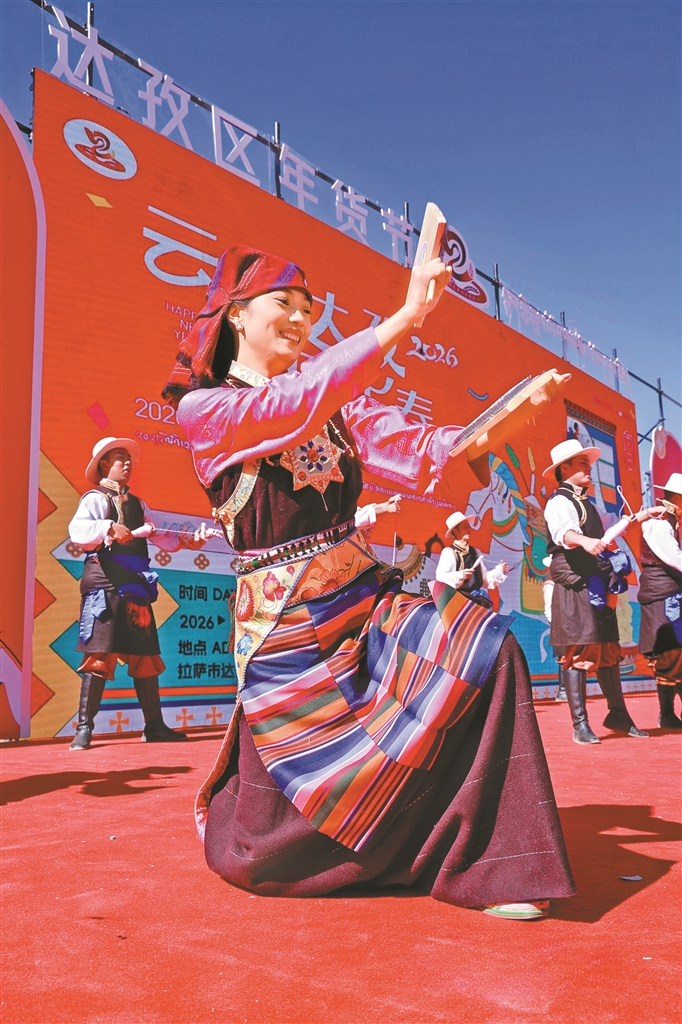 来自达孜区邦堆乡的普珍阿佳,带着自家以传统方法酿制的青稞酒,吸引了不少新老主顾前来购买;“90后”创业者达瓦将藏式纹样与现代设计相结合,制作出的新潮手机壳、帆布包,成为年轻人争相选购的“尖货”;书法家桌前排起长队,他们或送春联、或写“福”字;藏戏、民歌表演的舞台前更是掌声不断。