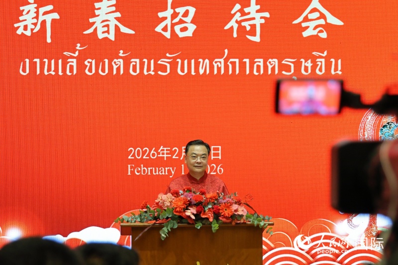 人民网曼谷2月12日电 (记者章念生、白元琪)2月11日,中国驻泰国使馆在曼谷举行2026年“温暖迎春 共庆中国年”新春招待会。泰国总理阿努廷及夫人、在泰华侨华人、中资机构人员、留学生代表等700余人出席活动。