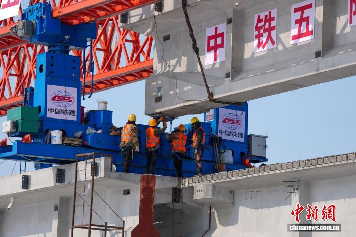 中新网佳木斯3月20日电 (记者 史轶夫)3月20日,黑龙江同江寒风未歇,新建同江特大桥施工现场一片火热。随着架桥机将一片长32.6米、重134.25吨的T型梁稳稳架设在157-158号墩柱间,中欧班列“东通道”口岸段最长桥梁正式复工架设,也拉开了黑龙江省重点铁路工程春季复工的大幕。