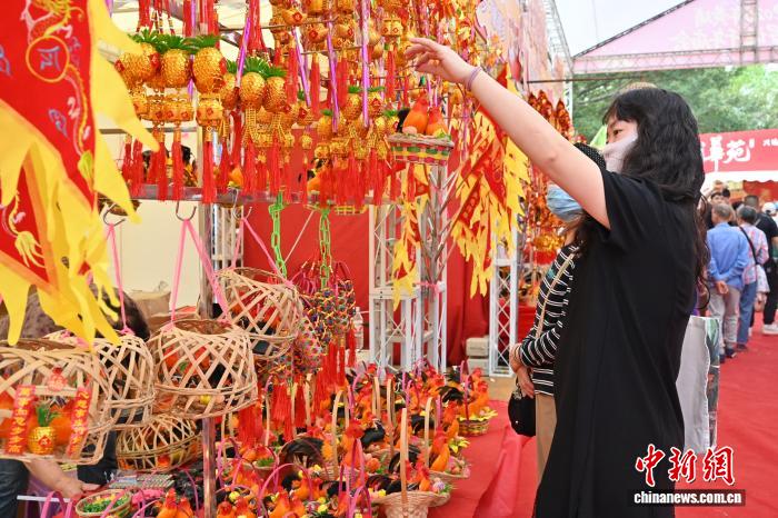 图为民众逛庙会祈福。中新社记者 陈楚红 摄