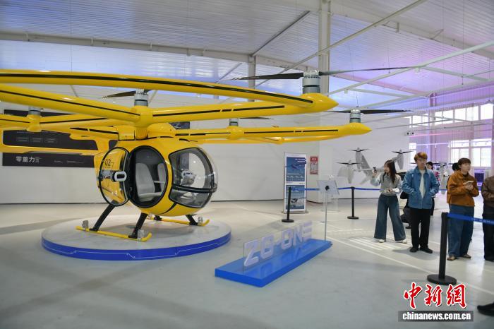 4月13日,在安徽合肥零重力飞机工业(合肥)有限公司,媒体代表在参观ZG-ONE“鹊飞”多旋翼eVTOL。中新社记者 储玮玮 摄