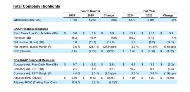 掉电车坑里!福特2025净亏566亿:停产关税致亏276亿,电车亏332亿