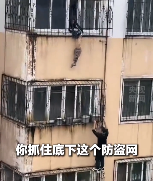外卖小哥徒手爬4楼救男童 救完人后手发抖