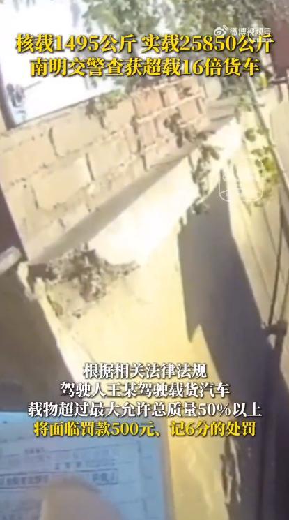 货车核载1495公斤实载25850公斤 严重超载被查