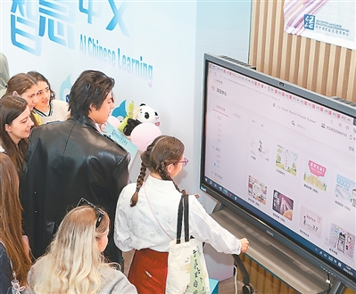 “中文智趣站·国际中文教育教学资源展”现场。 来自哥斯达黎加、曾参加过“汉语桥”比赛的何诗怡,在日前于北京举办的“中文智趣站·国际中文教育教学资源展”上体验了各类中文智慧教学平台后连连称赞,认为