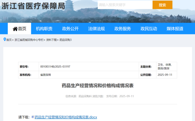 9月11日,浙江省医保局药械采购中心专栏发布《药品生产经营情况和价格构成情况表》,引发了行业内不小的讨论。
