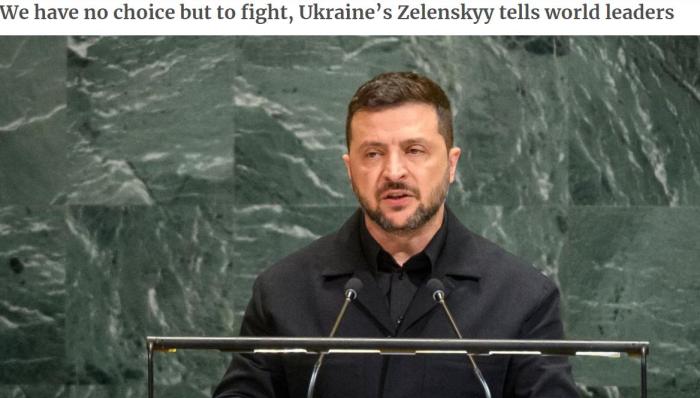 泽连斯基穿黑色服装在联合国发表演讲 会场空了一半
