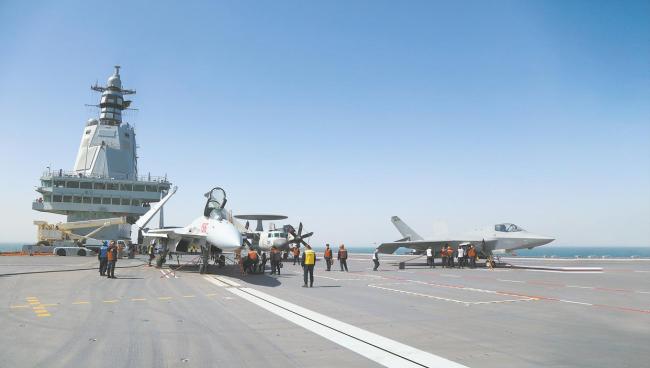 中国海军歼-15T、歼-35和空警-600三型舰载机完成在第三艘航母福建舰上的起降训练,标志着福建舰具备了电磁弹射和回收能力,这代表中国海军发展的一个重要里程碑