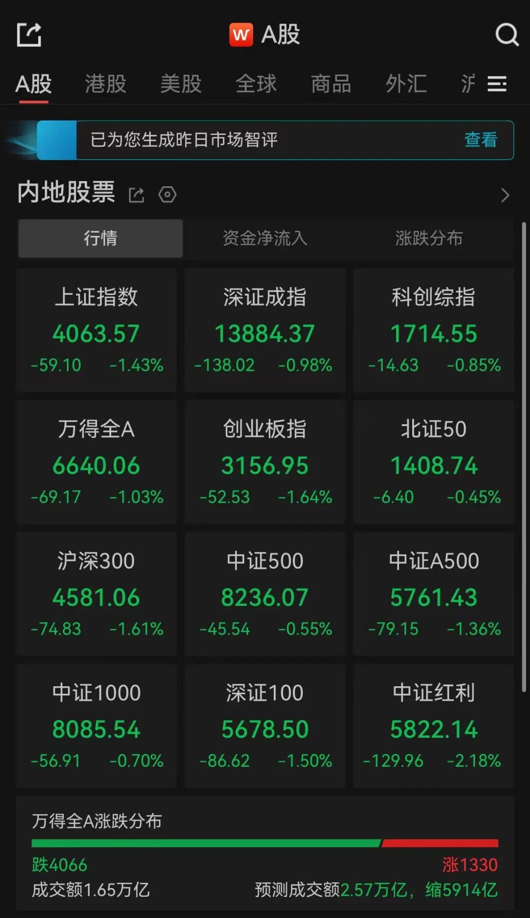 4日,A股三大指数低开,随后震荡调整。截至午间收盘,沪指跌1.43%,深证成指跌0.98%,创业板指跌1.64%。全市半日成交额1.65万亿,超4000只个股下跌。