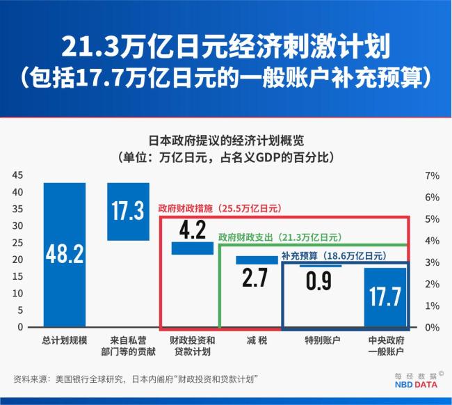 11月21日,日本首相高市早苗领导的内阁批准了一项总规模约为21.3万亿日元(约合人民币9656亿元)的综合经济对策。这是高市早苗上任以来的首个经济刺激计划